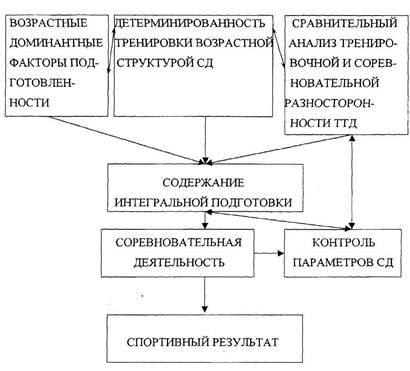 Одной из важных проблем в этом плане является сочетание в учебно-тренировочном процессе аналитического и синтезирующего компонентов. Первый из них предполагает целенаправленную работу над совершенствованием отдельных качеств или сторон подготовленности, второй - обеспечение взаимодействия комплексных проявлений всех сторон подготовленности в СД. В этой связи главная задача тактической подготовки - обеспечение слаженности и эффективности комплексного проявления многообразия составляющих, в совокупности определяющих успешность СД. Последняя, в свою очередь, в игровых видах спорта является тактической характеристикой спортивного мастерства.