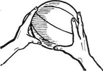 Большое значение в технике выполнения различных приемов игры с мячом имеет держание мяча (рис. 1). При бросках двумя руками не следует касаться мяча всей площадью ладоней, мяч нужно удерживать кончиками пальцев (рис. 2), что позволит лучше управлять мячом и добиваться большей точности попадания.