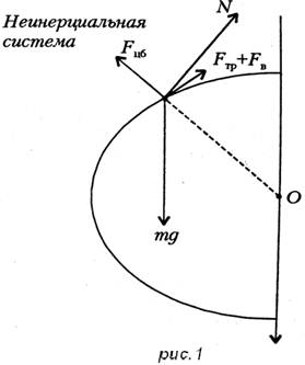 Сперва, рассмотрим движение на повороте, т.е. движение по окружности. В связанной с лыжником системе отсчета, введем центробежную силу (F цб), направленную от центра дуги, равную: