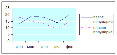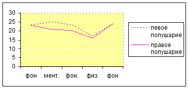 У них отмечены снижения значения омега потенциала мозга в ответ на нагрузку по левому полушарию, и относительное увеличение значений по правому полушарию. Такая динамика может указывать, во-1х, на высокую истощаемость спортсменок в ответ на нагрузку, их неспособность держать стрессовые ситуации. Во-2х, может обуславливать такие позитивные характеристики, с социальной точки зрения, как высокую социальную лабильность и нестандартность подхода.