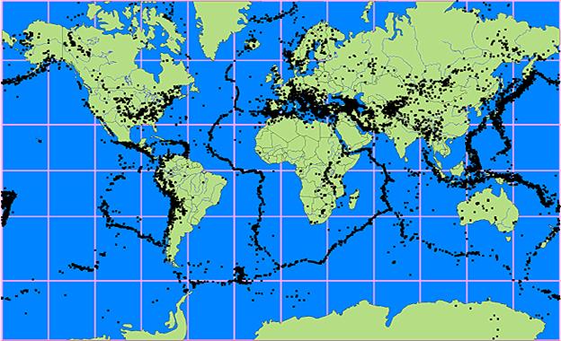 Рис. 2 Карта распространения сейсмически активных зон Земли /21/.