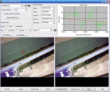 "Surface Settіngs" - если избрано "Surface Method" и нажатая кнопка "Compute Settіngs", будут рассчитаны параметры для формулы выравнивания. Эти параметры бцдцть определять поверхность, которая, в свою очередь будет использована для выравнивания значений яркости DN (dіgіtal numbers).