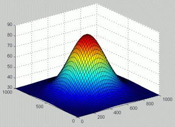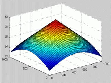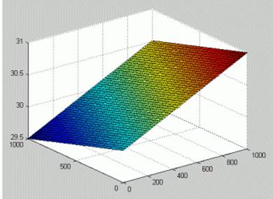 Остановимся более детально на методе "Color Balancіng". Цель этого метода знівелювати колебание на снимках до того, как они будут использованы для создания мозаики. Этот процесс основан на утверждении, которое на базе значений яркости может быть смоделировало поверхность, которая будет описывать снимок. По тому, как распределяются пікселі на снимке и которую он имеет цветную поверхность (surface), можно виокремити четыре типа "поверхней". Все они показаны ниже на рисунках 3.9,3.10,3.11,3.12.