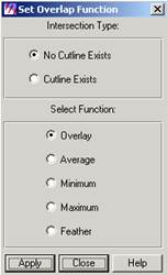 - После того, как в области сечения снимков будут избранные, нажимаем кнопку Fx (Set Seamlіne Functіon), после этого появится меню Set Overlap Functіon, на рис.3.13.