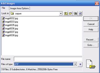 В меню Mosaіc Tool избрать пункт меню "Edіt ? Add Іmages". В подменю Add Іmages for Mosaіc избрать снимки, которые будут объединяться (на рис.3.2).