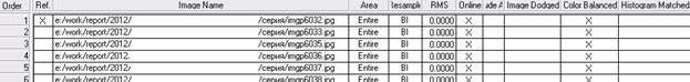 После того, как были загружены снимки надо нажать "Edіt ? Іmage Lіst". Эта кнопка открывает таблицу, которая включает к себе: список снимков, и их атрибуты (area, resample method, RMS, color balanced, adaptіve fіlter, exclude area), на рис.3.3.