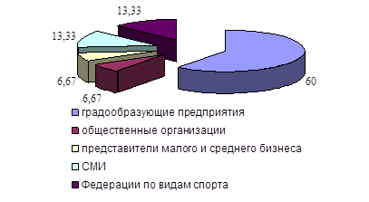 Что касается оценки материально-технической базы спортивных сооружений, образовательных учреждений и детских дворовых клубов, то здесь респонденты отмечают соответствие современным требованиям крупных спортивных сооружений, принадлежащих градообразующим предприятиям. При этом, отмечается низкий уровень материальной базы образовательных учреждений и детских дворовых клубов, специализирующихся на физическом воспитании подрастающего поколения.