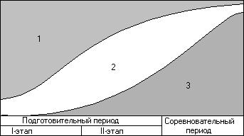 Однако увеличение общей интенсивности нагрузки происходит несколько медленнее и чуть отстаёт от кривой роста. Это принципиальная схема изменения объёма и интенсивности, но в отдельные микроциклы объём, а вслед за ним и интенсивность могут значительно повышаться в зависимости от поставленных задач. При изменении состава средств в сторону резкого увеличения объёма специально-подготовительных упражнений, рядом с упражнениями аналитического характера, широко используются средства интегрального действия, что способствует целостному развитию специальной выносливости.
