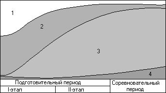 Однако, уже в первом мезоцикле годичного цикла широко используются упражнения, направленные на совершенствование отдельных компонентов специальной выносливости и до середины первого этапа они занимают больше 50% от общего объёма работы, которая способствует развитию выносливости (Рис. 6). [21]