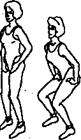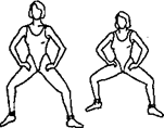 Разработка ягодичных мышц, задних мышц бедра Стоя, ноги врозь, руки на бедрах, живот втянут. Сгибая колени, движение выполнять вниз - назад до тех пор, пока бедра не встанут параллельно полу. Зафиксируйте положение, вернитесь в исходное положение. |