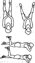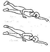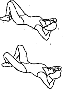 Разработка ягодичных и боковых мышц бедер Лежа на боку, верхнее бедро расположено строго над нижним. Верхнюю ногу, слегка согнутую в колене, поднимите на 5-10 см. Начиная со ступни, поверните, верхнюю ногу так, чтобы носок смотрел вниз. Начиная со ступни, поверните ногу в противоположном положении. |