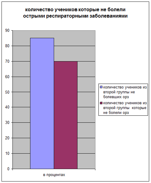 Количество учеников не болевшие острыми респираторными заболеваниями во время педагогического исследования в процентах.