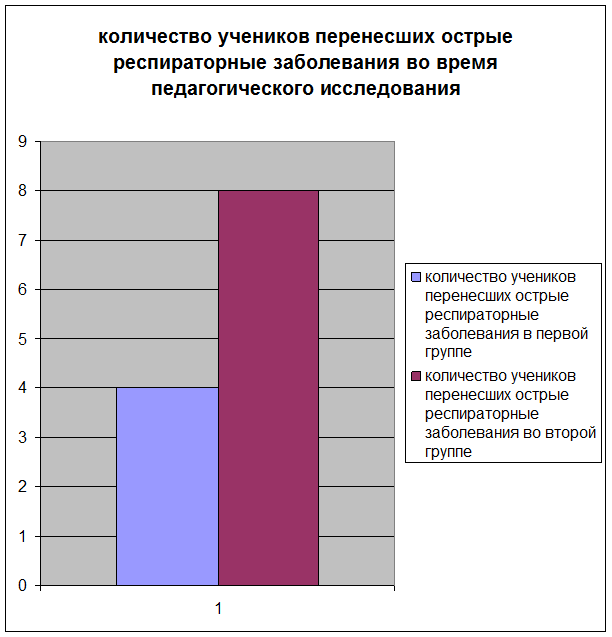 Количество учеников болевшие острыми респираторными заболеваниями во время педагогического исследования в числовом отношении