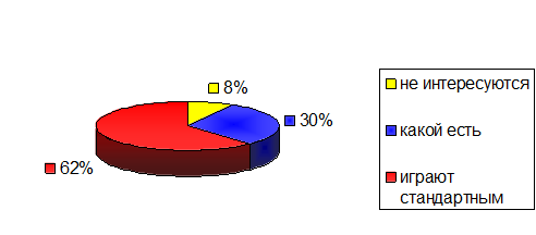 62% учащихся предпочитают играть в спортивные игры со стандартными мячами.
