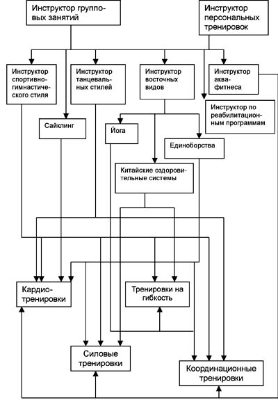 Проведенный анализ основных направлений в аэробике [4, 5] в России и за рубежом [6 - 11], большой практический опыт комплектования и подготовки персонала инструкторов в фитнес-клубах и спортивно-оздоровительных центрах позволил разработать модельные характеристики, определить функции и обязанности инструкторов различных специализаций и направлений.