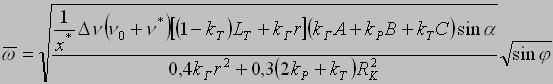 Из этого закона, опуская промежуточные математические выкладки, получаем многопараметрическое аналитическое выражение для определения скорости w* вращения фигуриста в полете, которая создается совместно стопорящим действием конька о лед и закручиванием тела: