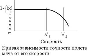 При этом линейная зависимость точности от скорости полета мяча реализуется в диапазоне скоростей: