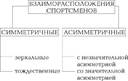 Положения спортсменов могут быть симметричными и асимметричными. В данном случае под симметрией понимается соразмерность частей тела спортсменов (рук, ног, туловища), расположенных по обе стороны условной середины, определяемой воображаемой плоскостью, включающей проекцию точки ОЦМ (общего центра масс) тел обоих спортсменов на их общую площадь опоры. Взаиморасположения, в которых положение одного спортсмена отличается от положения его противника, считаются асимметричными (рис. 2).