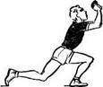 При выпаде вперед одна нога быстро выставляется вперед, ступня проносится над самой поверхностью площадки, что способствует понижению центра тяжести. Вторая нога стремительно разгибается и разворачивается носком наружу. При приеме мячей сразу двумя руками туловище наклоняется вперед, при верхней передаче оно принимает более вертикальное положение (рис.1).