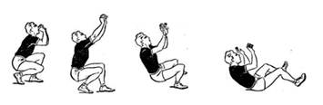 Падение перекатом на спину может выполняться и после выпада в сторону. Предварительно игрок поворачивает туловище в сторону вытянутой ноги и после передачи (рис. 4) делает перекат на спину.
