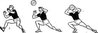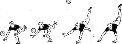 Обычно выполнению приема мяча с падением перекатом на спину предшествует перемещение вперед бегом или скачком.