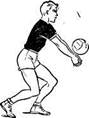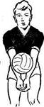 Прием мяча снизу двумя руками стали использовать в связи с возросшей мощью нападения, а также применением сильных и планирующих подач. При приеме снизу прямые руки выставлены вперед-вниз, локти максимально приближены друг к другу, предплечья супинированы; кисти вместе, туловище вертикально или слегка наклонено вперед (рис. 6). Движения руками производятся только в плечевых суставах. Мяч принимается на предплечья ближе к кистям рук (рис. 7).