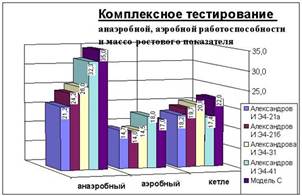Таким образом, условия выполнения теста дают возможность моделировать 12-15 дискретных интервалов нагрузки в диапазоне большой и субмаксимальной мощности. Поэтому показатель, характеризующий совокупную интенсивность (темп) этих скоростно-силовых отрезков нагрузки, может служить индексом анаэробной работоспособности (АнР):