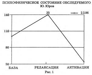 Для оценки ПФС испытуемый выполняет стандартную программу с задачами вначале - релаксации (5 мин), а затем - активации (5 мин). Автоматическое измерение трех значений ЭКС (базового, в конце фазы релаксации и в конце фазы активации) и обработка этих результатов по специальному алгоритму позволяют получить количественную оценку ПФС обследуемого - индекс ПФС. Диапазон оценок выглядит следующим образом: больше 35 - "отлично", 25-35 - "хорошо", 15-25-"удовлетворительно", меньше 15- "неудовлетворительно". Но поскольку ранжирование количественных оценок распространяется в обе стороны от оптимума (в сторону стрессового перевозбуждения и в сторону депрессивного состояния), то ИМС, реализующая технологию, предоставляет наблюдателю также графическую конфигурацию динамики ЭКС (рис. 1). Геометрическая форма этой кривой раскрывает качественную сторону ПФС в рамках теоретически возможных вариантов.