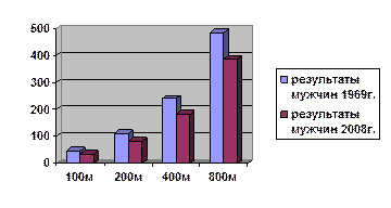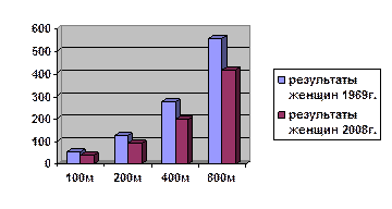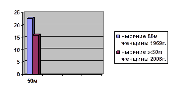 Рассмотрим динамику результатов в плавании в ластах, сравнивая результаты 1969 г. (год появления моноласта и ее использование на официальных соревнованиях) и результаты мировых рекордов 2008 г.: