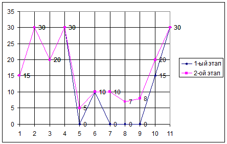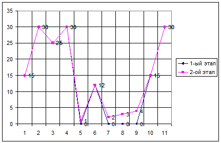 Рис. 3. Индивидуальный профиль физической подготовленности учащейся М.О. (контрольная группа).