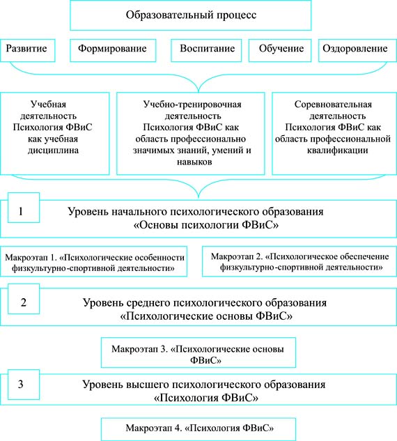 В данном случае область психологического обеспечения физкультурно - спортивной деятельности следует понимать как специализированную систему психологического образования специалистов по физической культуре и спорту, которая характеризуется своим содержанием (рис. 1).