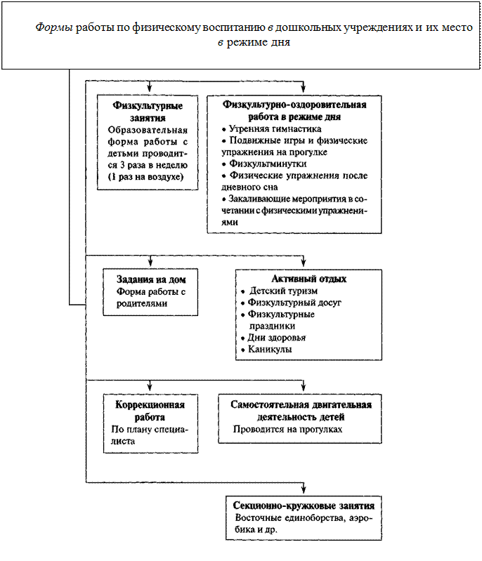В дошкольных учреждениях обычного типа утренняя гимнастика проводится ежедневно перед завтраком, в детских садах с круглосуточным пребыванием детей — сразу же после ночного сна (зарядка).