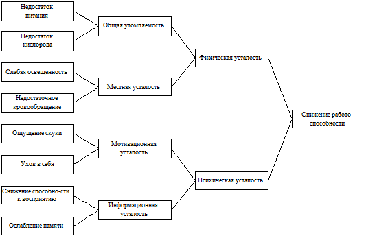Рис. 1. Причинно-следственные связи при наступлении усталости и снижении работоспособности