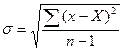 σ (сигма) - среднее квадратичное отклонение значения показателя;