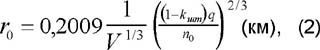 В качестве первой грубой оценки приведем результаты расчета среднегодового радиуса загрязнения (табл. 1), r0 в приближении круговой розы ветров для Коломны с Кшт=0 и Костромы с Кшт = 0,04 (данные для января) (2)[6, 7].