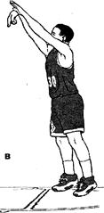 Пауза (рис. 2б)— в исходном положении для броска игрок должен сделать паузу в движении на мгновение: для того, чтобы успокоится физически и умственно и сосредоточится, но не дольше. После паузы все движения должны быть направлены вверх и по дуге в направлении кольца.