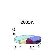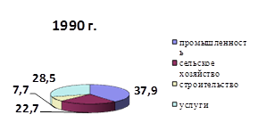 По данным таблицы мы видим, что структура ВВП значительно изменилась: доля промышленности уменьшилась на 10%, сельского хозяйства – уменьшилась в 3 раза, а вот доля услуг увеличилась в 1,5 раза, что говорит о переориентации нашей экономики на социально-экономическое развитие. Удельный вес строительства менялся незначительно в течение рассматриваемого периода и остался практически без изменений.