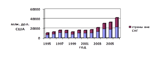Что касается торговли со странами СНГ и остальным миром, то здесь мы видим, что страны СНГ занимают лидирующее положение и практически в течение всего рассматриваемого периода их доля составляла до 67%. Но за последние два года ситуация изменилась, удельный вес этих стран практически сравнялся с удельным весом остальных стран и уже в 2006 г. составлял 55%.