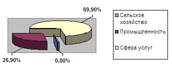 По данным Федерального статистического ведомства ФРГ, структура экономики герани является таковой, что 0,8% ВВП создается в сельском хозяйстве, 29,6% - в промышленности, 69,6% ВВП - в сфере услуг. Для большей наглядности это можно представить в виде рисунка (Рис. 5)