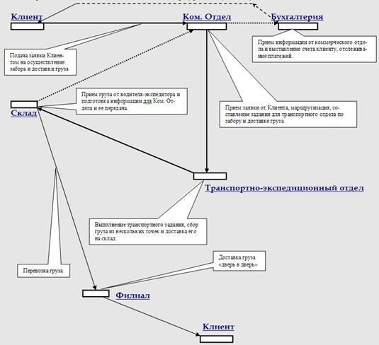 Б) Получение заявки от Клиента на доставку груза «дверь в дверь»