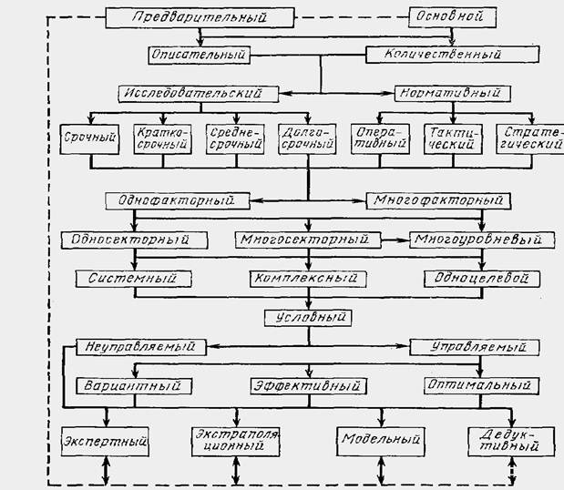 Исследовательский прогноз показывает возможные направления научно-технического прогресса, обеспеченные народнохозяйственными ресурсами и научно-техническими разработками. По длительности прогнозного периода исследовательские прогнозы подразделяются на срочные (составляемые на заданный период). краткосрочные, среднесрочные и долгосрочные. К краткосрочным относятся прогнозы, охватывающие период, на один год превышающий время начала удовлетворения потребностей в рассматриваемых достижениях научно-технического прогресса. Среднесрочные прогнозы составляются на срок, начиная с которого полностью удовлетворяются потребности в этих достижениях. Долгосрочные прогнозы охватывают весь экономический горизонт в исследуемой области народного хозяйства. Деление прогнозов на краткосрочные, среднесрочные и долгосрочные таким способом не является общепринятым в прогностической литературе. Тем не менее оно представляется удачным, поскольку учитывает специфику каждого конкретного объекта прогнозирования.