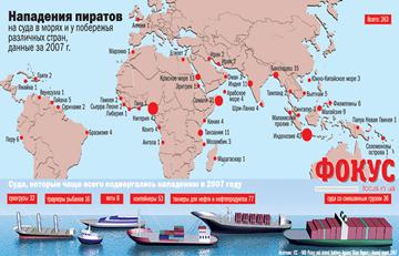 Приведем карту морских пиратских нападений в мире за 2007 и 2008 годы, которые наглядно иллюстрируют ситуацию с развитием пиратства в мире.