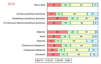 Таблица 4 - Доля основных возрастных групп в населении мира и отдельных регионов, 2010 год, средний вариант, % По данным UN World Population Prospects 2008 Revision