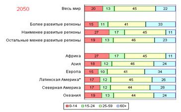 Таблица 5 - Доля основных возрастных групп в населении мира и отдельных регионов, 2050 год, средний вариант, % По данным UN World Population Prospects 2008 Revision