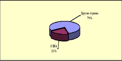 Рис.1. - Доля США в мировом ВВП в 2005 году, в %