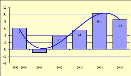 Вместе с тем наметившееся определенное оживление на рынке мировых инвестиций в 2005 году является важной составляющей в процессе постепенного возвращения мировой экономики к положительной динамике развития.