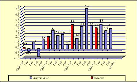 Рис.3 - Динамика ВВП США (в % к предыдущему периоду)