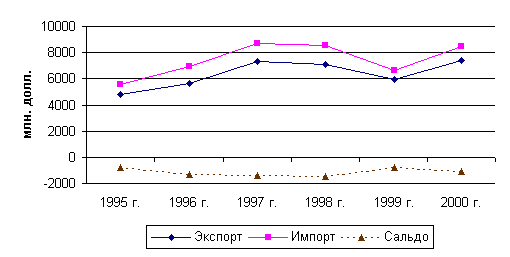 Ухудшение внешнеторговой конъюнктуры в течение 2001 года негативно отразилось на результатах внешнеэкономической деятельности предприятий республики. Отрицательное сальдо торгового баланса возросло в 1,4 раза, составив 10,6% к ВВП за 2000 год. При этом в торговле со странами СНГ дефицит торгового баланса увеличился в 2,3 раза, а в торговле со странами дальнего зарубежья сложилось положительное сальдо экспортно-импортных операций против дефицита в 2000 году. (см. Приложение II)