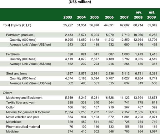 Рис. 1 Динамика импорта основных товаров 2003-2009 гг. [12]