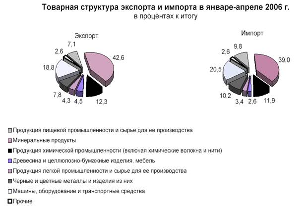 Сводные данные по структуре экспорта и импорта приведены в диаграмме 2.